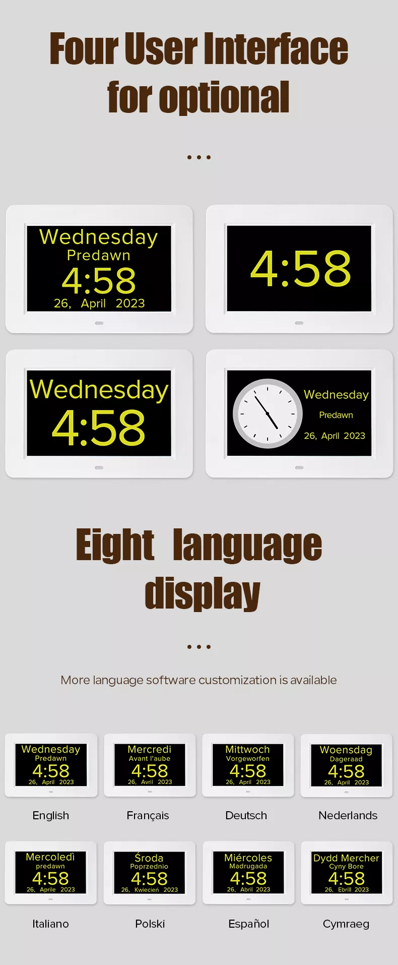 3. УИ карактеристика: Основни календар УИ; Само недељу и време; Само време; Аналогни сат