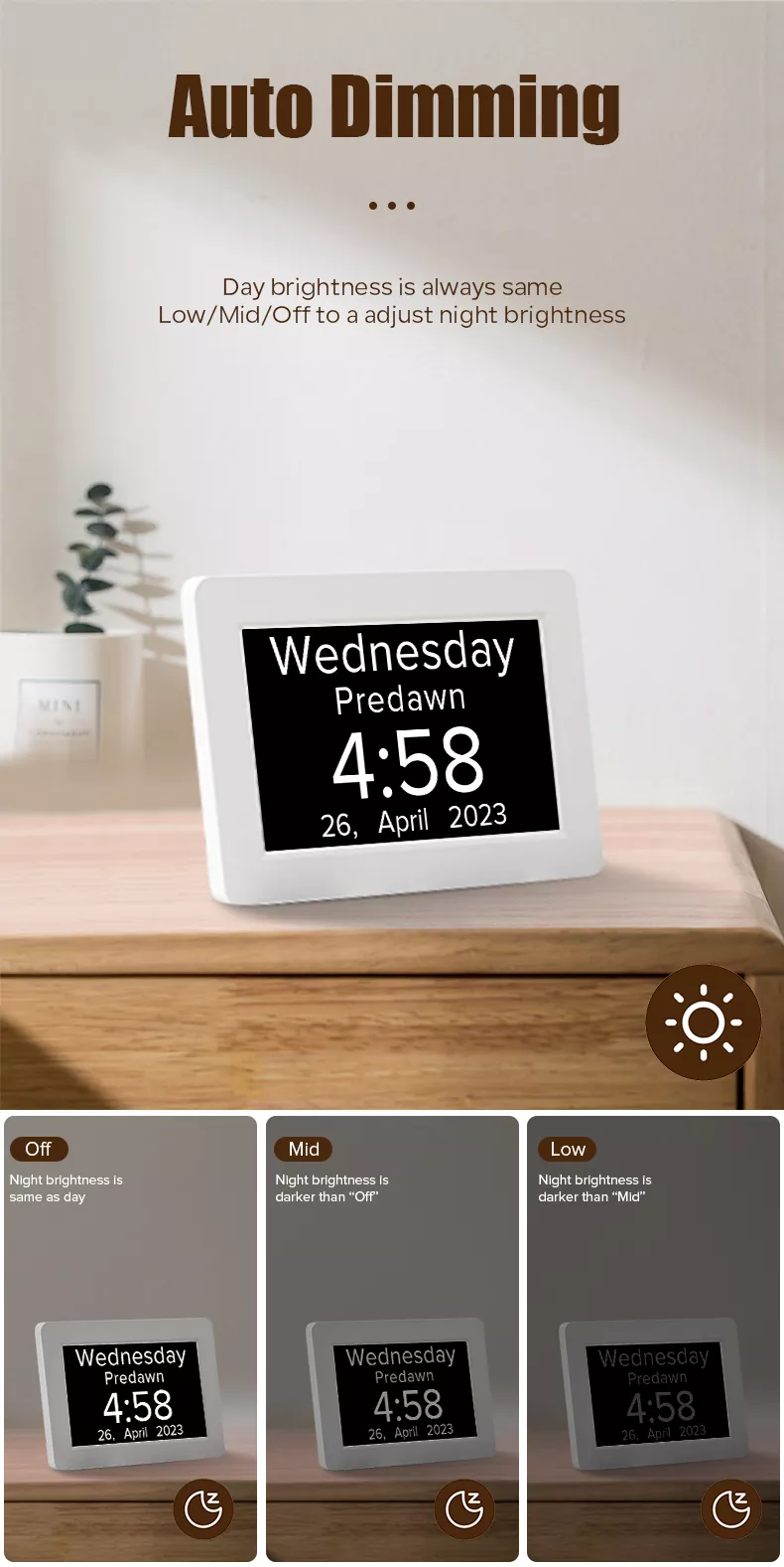 8 Аутоматско затамњење: низак / средина / искључивање