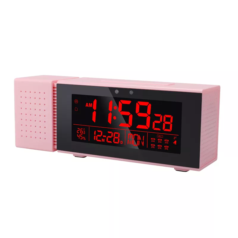 Мултифункционални дигитални стони сат, седам цифара у боји приказује ноћно светло ФМ радио сат, седам боја позадинског осветљења је подесиво, Осветљеност позадинског осветљења екрана аларма може се подесити у три нивоа, седам језика за седмицу. Када ради радио, можете подесити време мировања. Имамо две врсте напајања: када користите УСБ кабл за напајање, производ је стално укључен; када користите батерију, производ није увек светао, али може да прати време. Радио може да складишти 10 станица и функцију инфрацрвеног сензора.